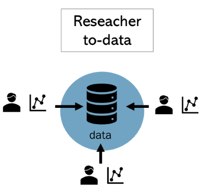The researcher-to-data strategy works well when there is one data controller that controls a large collection of data. However, a problem arises when sensitive data from multiple data holders are in combination needed for analysis. In those cases, collecting data in one central environment is often not a convenient solution since individual data holders might not want to lose control over their data.
