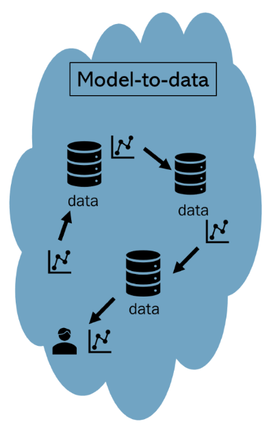 Model to Data is an approach where the data controller allows researchers to send algorithms or queries to the data source to collect an answer or a trained algorithm back. When properly implemented, this method guarantees that underlying is not exposed. This strategy is the most complex to implement, but enables privacy by design.