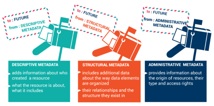 Descriptive metadata is dedicated to the textual description of the data, which datasets are available, what are the limitations for data usage, contact point within the organization for data, etc.